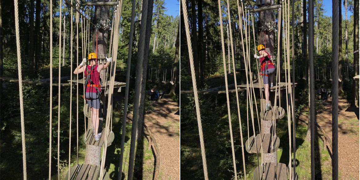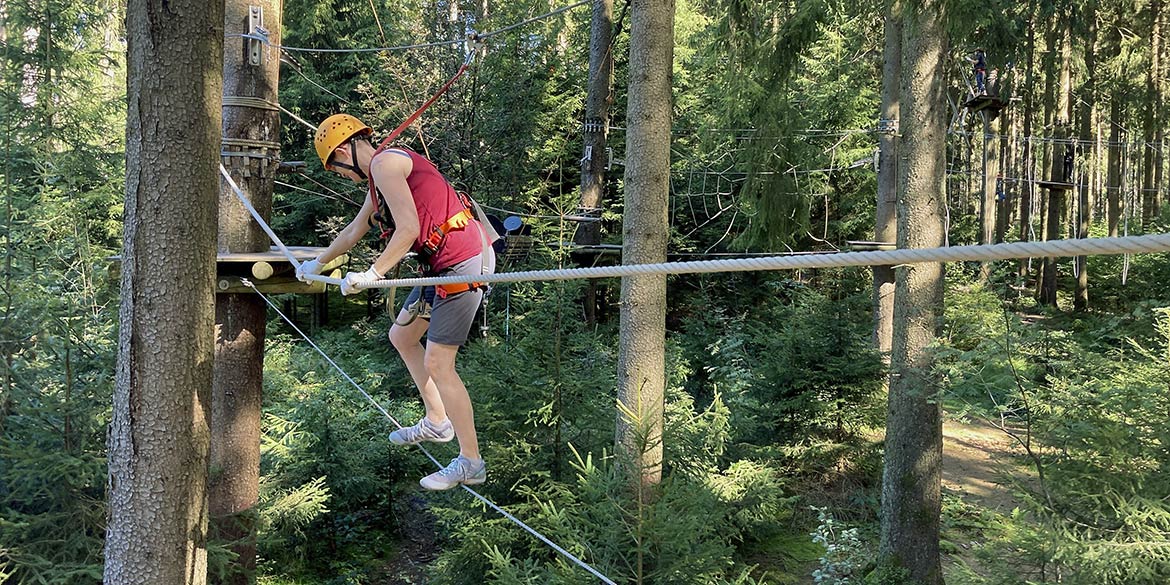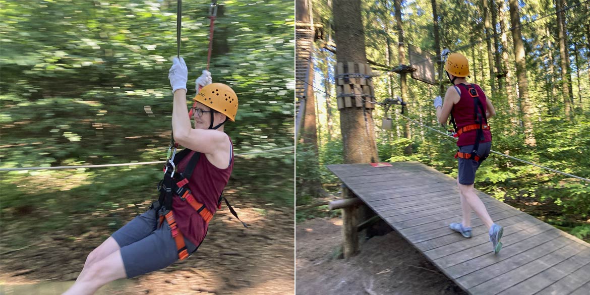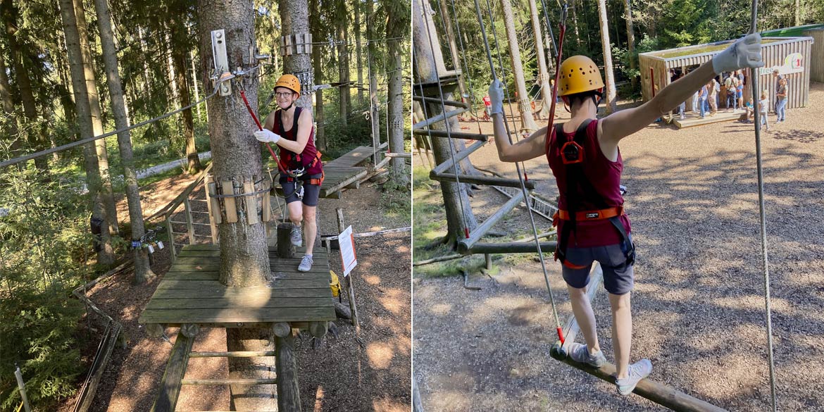 Endlich! Inzwischen jahrelang schon hatten wir unseren Betriebsausflug in einen Hochseilgarten angedacht, waren dann aber leider durch Corona und verschiedene andere Vorkommnisse ausgebremst worden. Jetzt aber war es so weit und auch wenn wir derzeit nur zu zweit (naja oder auch zu dritt mit DER Chefin) sind, hatten wir richtig Spaß.