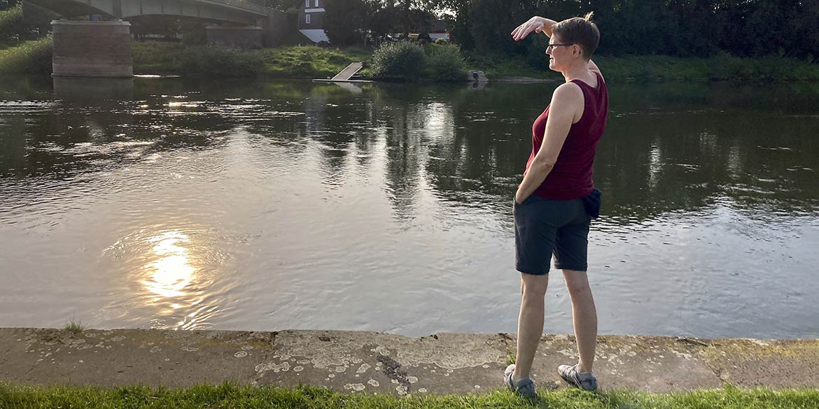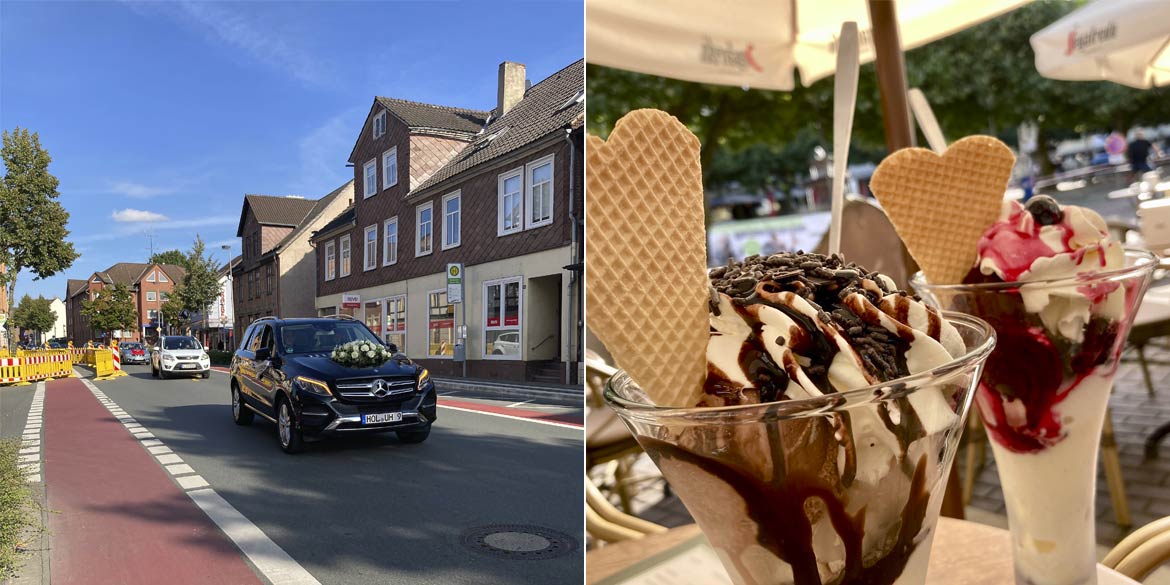 Ausgesprochen guter Laune fuhren wir dann nach Holzminden, um uns nach dem Hotel-Check-in mit einem angemessenen Eisbecher zu belohnen. Zu Fuß bis zum Markt zu kommen war allerdings eine kleine Herausforderung, weil eine türkische Hochzeit einigen Raum für ihren mehrfach durch die Innenstadt fahrenden Autokorso einnahm. Aber im Eiscafé angekommen, war es einfach nur lecker. Dann haben wir noch den Italiener für die abendliche Pizza (superlecker) klargemacht und sind eine kleine Runde bis zur Weser spaziert, wo wir auch schon die Hafenbar (sehr nett) für den nächtlichen Absacker scouten konnten. All dies „erledigt“, war die Dusche im Hotel eine willkommene Erfrischung. Das das oben genannte Abendprogramm haben wir dann in vollen Zügen genossen haben, ehe wir zufrieden in die Hotelbetten gefallen sind.