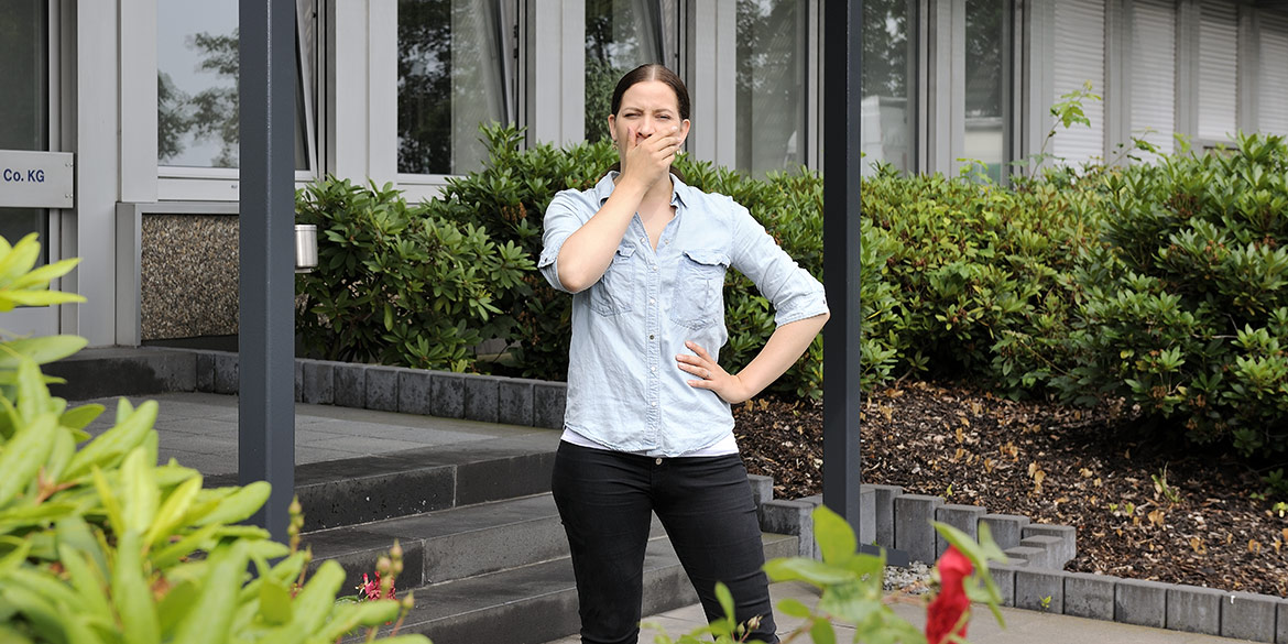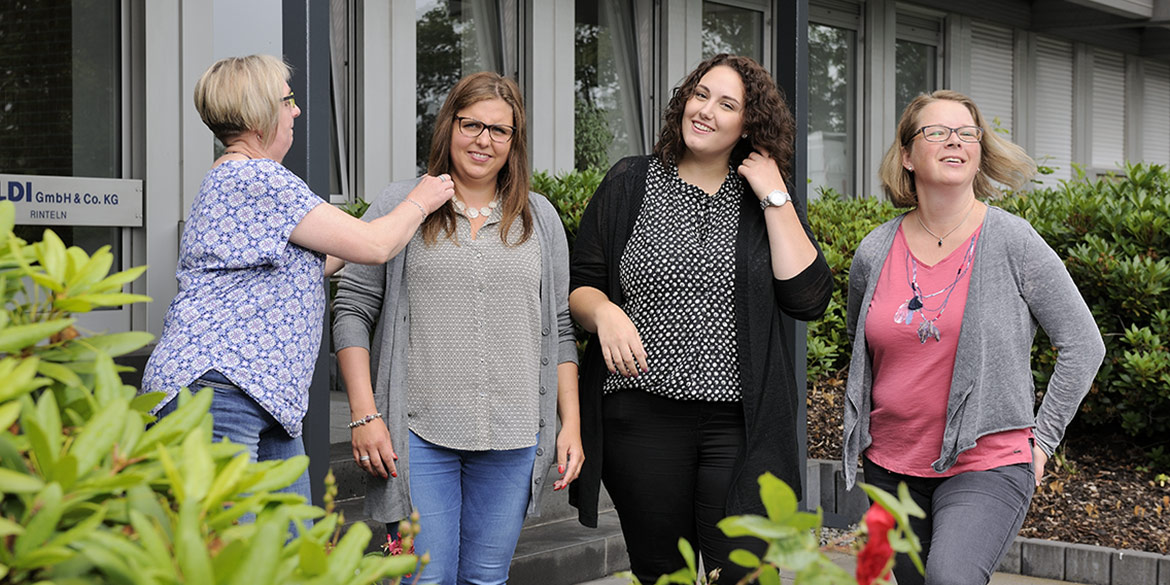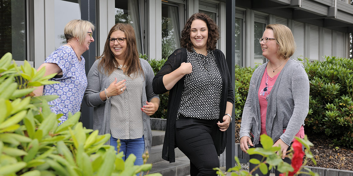 Vor Ort besichtigten wir die Räumlichkeiten und suchten uns die optimalen Standpunkte für unsere Aufnahmen aus. Zu fotografieren waren ein Einzelportrait und eine Gruppenaufnahme. Bei der Gruppenaufnahme entschieden wir uns für zwei verschiedene Orte: einmal in den Räumlichkeiten und einmal vor dem Gebäude. Für den optimalen Blickwinkel standen die Mitarbeiterinnen dabei halb im Beet des Vorgartens.