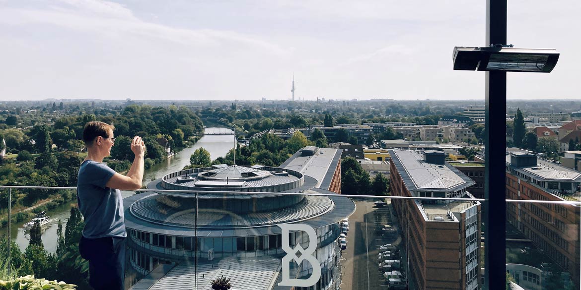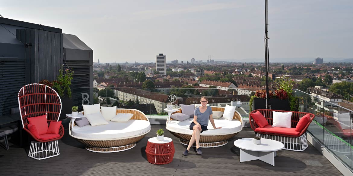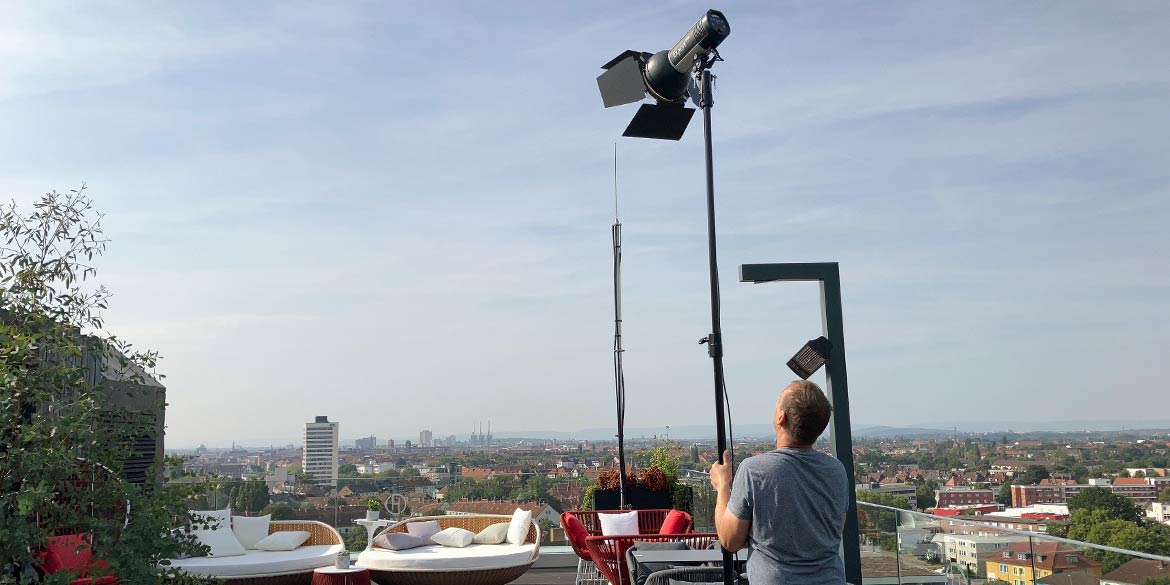 So eine coole Location haben wir wirklich nicht täglich zum Arbeiten. Umso schöner, dass wir für eine Gruppenaufnahme mal dort sein konnten: in der Rooftop-Bar „Havn“ des LOFTSTYLE Hotels in Hannover (https://havn-hannover.de/). Bei hochsommerlichen Temperaturen bereiteten wir in Ruhe ein schönes Setting mit den großzügigen Lounge-Möbeln der Bar vor, um anschließend 40 Mitarbeitende von HDI dort als Gruppe zu positionieren, die im Hotel für ein Meeting zusammengekommen waren.