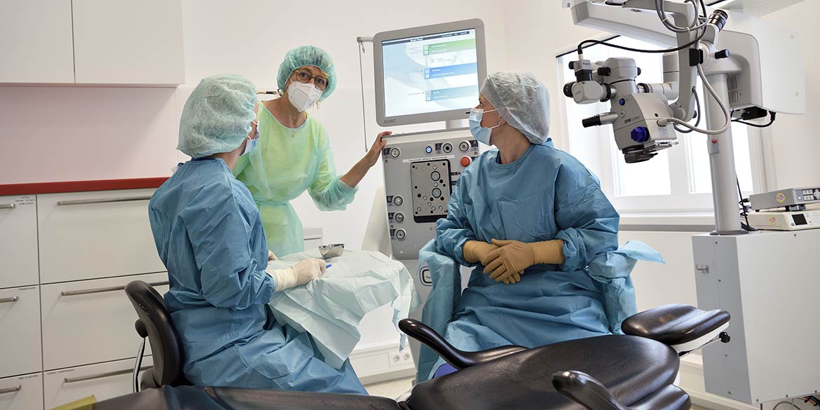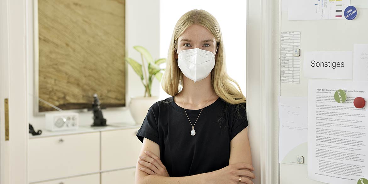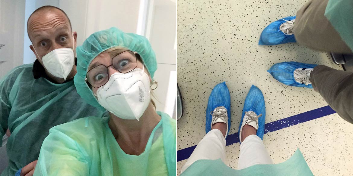 Es war ein vollgepackter Tag. Erst standen Portraits auf dem Programm, dann Imageaufnahmen, und das ganze fand im Augenzentrum Lister Platz von Vater, Tochter und Sohn Köhler statt. Die Aufnahmen, die wir vor ein paar Jahren bereits dort erstellt hatten, sollten durch neue Motive ergänzt und teilweise ersetzt werden. Besonders spannend war es für uns, im OP zu fotografieren. Ehe wir dort Zutritt hatten, mussten wir uns in entsprechender Kleidung inklusive Hauben und Schuhüberziehern einschleusen. Für den reibungslosen Ablauf des Praxisbetriebs musste unsere Arbeit auch mal unterbrochen werden.