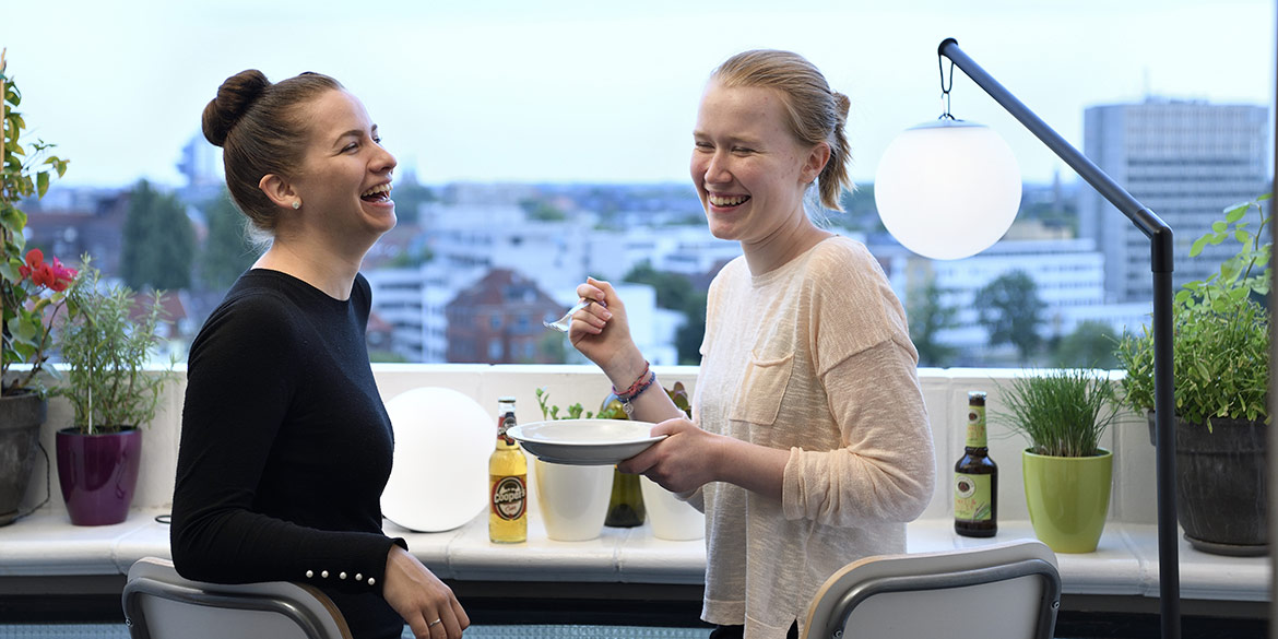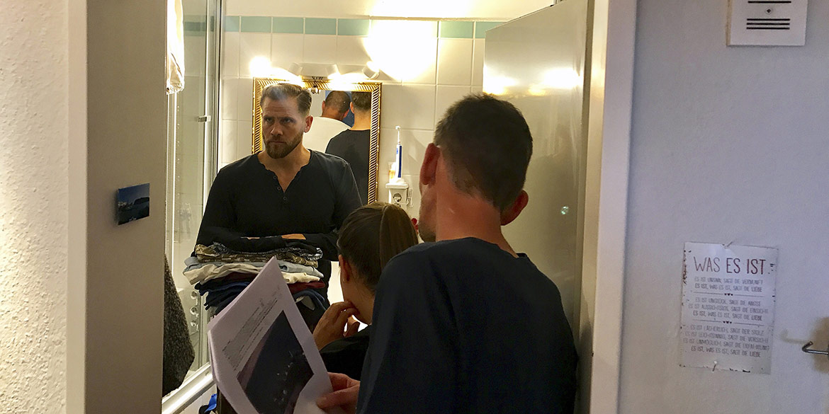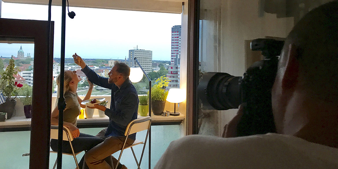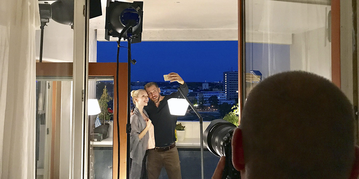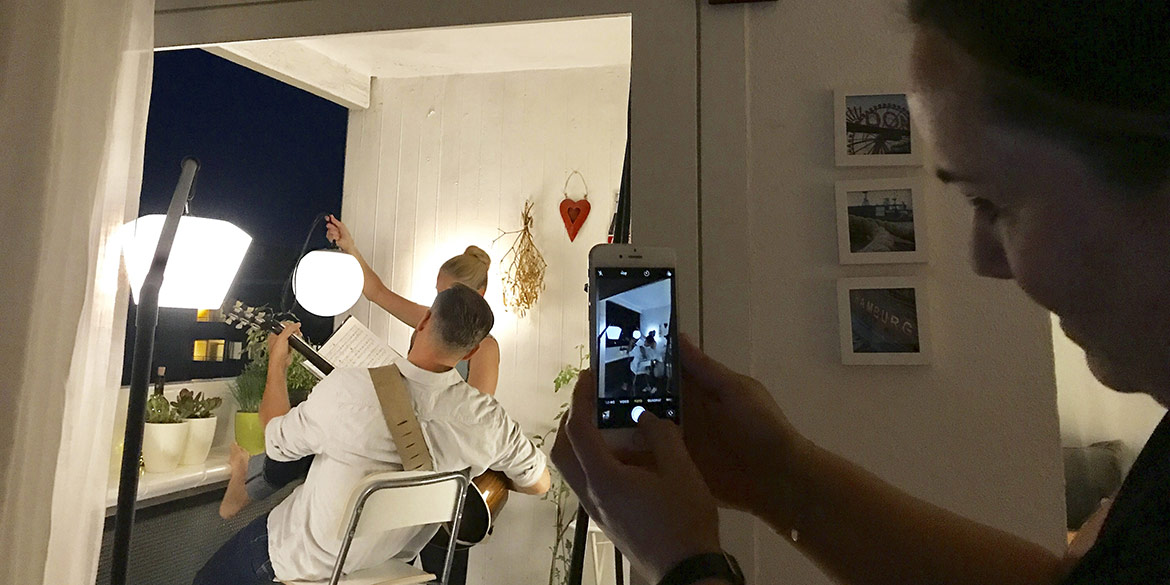 In Sandra H’s kleiner Wohnung im Ihmezentrum tummelten sich mehr Menschen als je zuvor zeitgleich hier gewesen waren. Die Vorbereitungen liefen auf Hochtouren. Mit zwei Sandras und zwei Lisas am Set mussten wir die Eindeutigkeit der Ansprachen deutlich erhöhen. Wir warteten auf den Untergang der Sonne und präparierten alle Requisiten. Es wurden Yes-Törtchen von der Verpackung befreit, Mini-Gugelhupfe mit Kerzen und Wunderkerzen besteckt, ein Feuerzeug bereit gelegt. In der Küche brodelte Sandra H. Nudeln für‘s erste Motiv auf dem Herd und im Bad wurden detaillierte Anweisungen zu Klamotten-Auswahl und Haarstyling mit den Modellen besprochen.