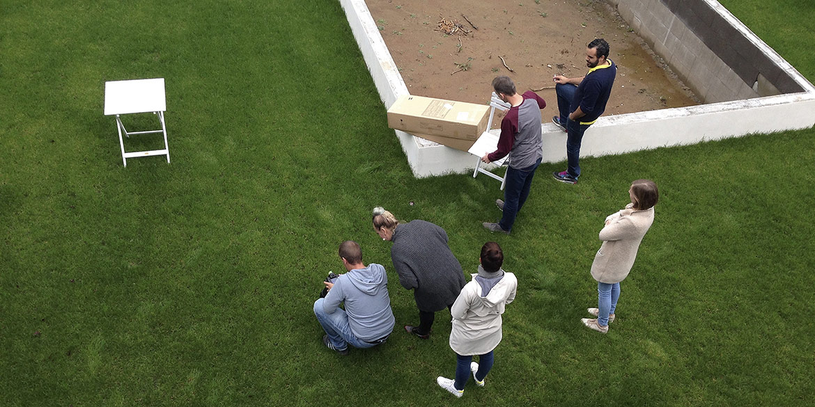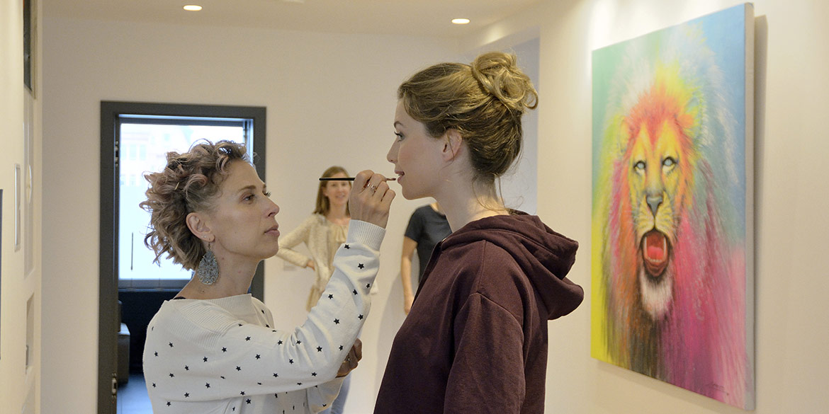 Der Tag begann leider mit einer Vollsperrung auf der A2, in der unsere Stylistin aus Berlin feststeckte, die natürlich das Auto voller Accessoires und Kleidung hatte. Außerdem war auch der Flug des belgischen Modells Nana J. verspätet, was ihre Vorbereitung in der Maske nach hinten verschob. Die Wartezeit konnten wir aber sinnvoll nutzen, um den Ort für die ersten Szenen bestmöglich vorzubereiten.