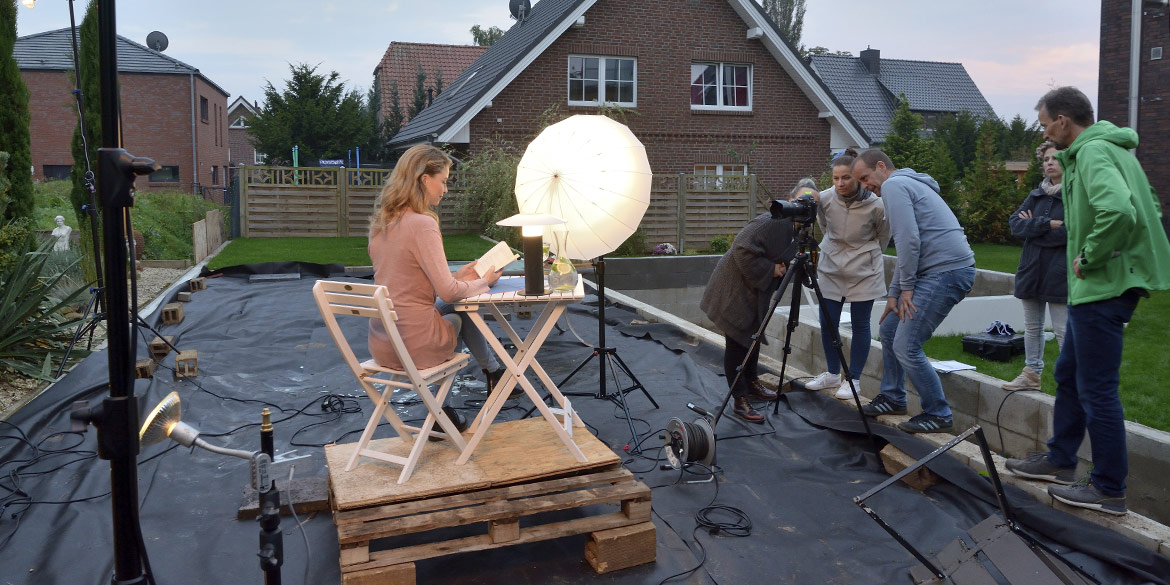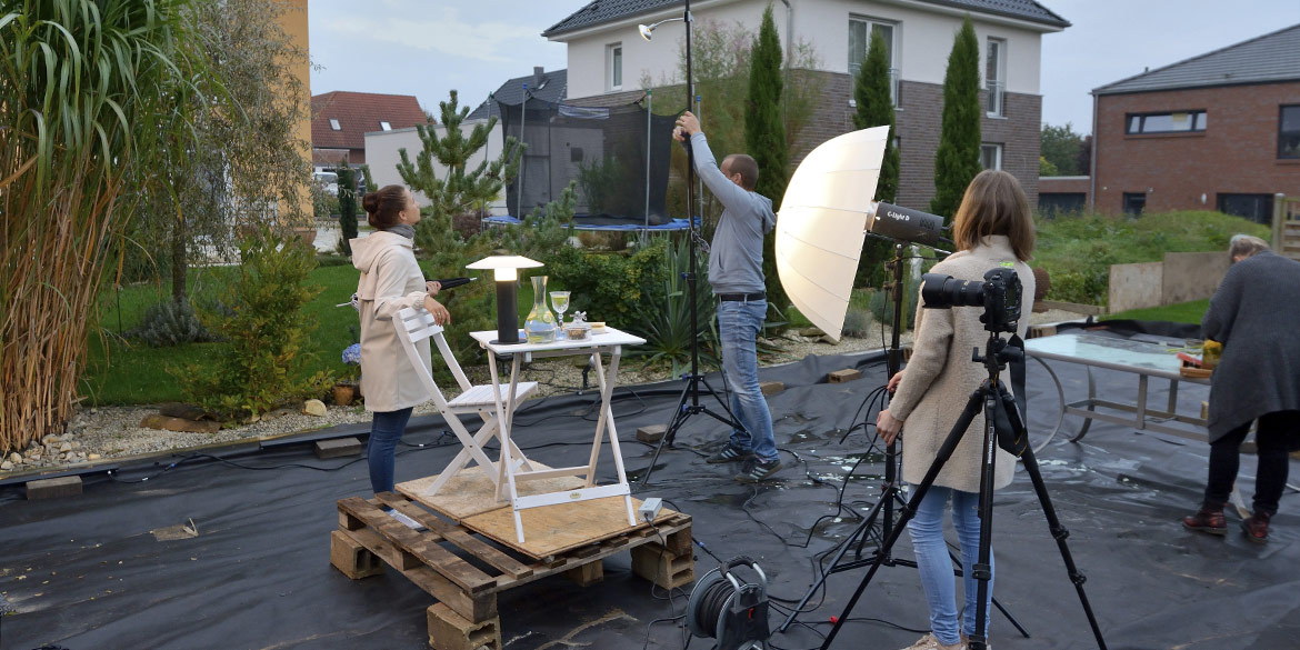 Gegen Abend waren Dämmerungsaufnahmen im Garten geplant – die wichtigsten dieses Shootings und der eigentliche Aufhänger dafür. Tagelang war die Wetterprognose sensationell gewesen, aber gerade heute musste es sich ändern und regnerisch sein, sodass ausgerechnet diese Aufnahmen lange auf der Kippe standen und Daniels Stirn beim Blick aus dem Fenster Falten warf.