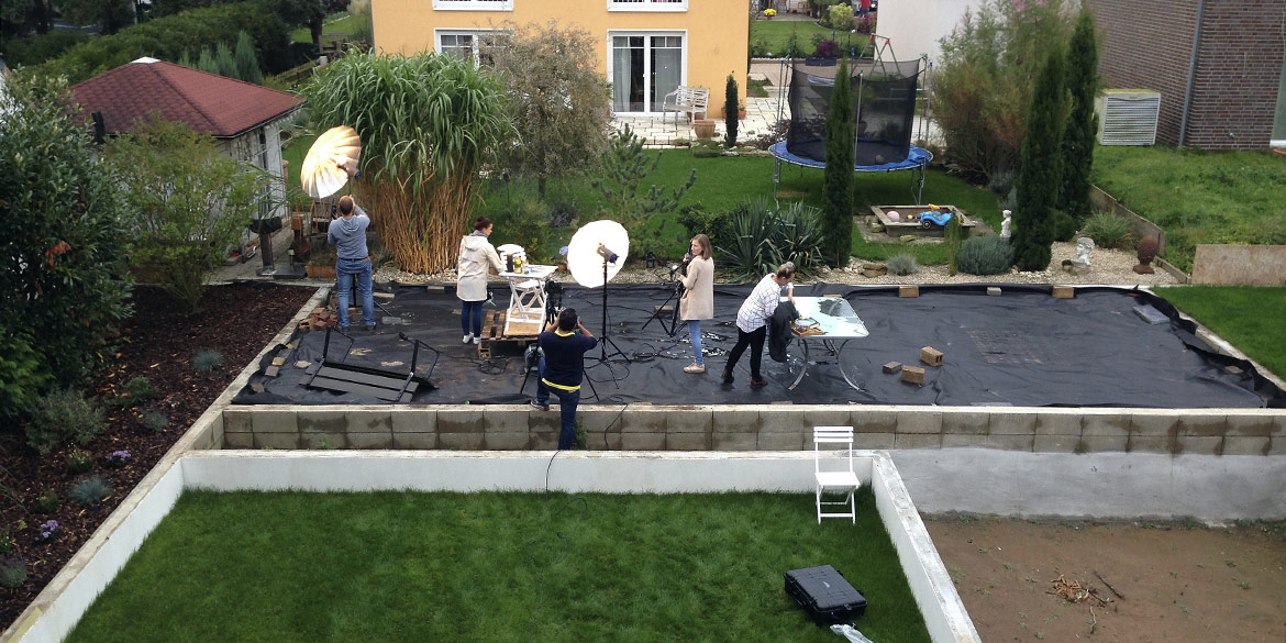 Zudem war der Garten noch größtenteils Baustelle, was man den Bildern natürlich nicht ansehen sollte. Aber der Bildausschnitt macht’s und letztendlich fotografierten wir einfach in Richtung Nachbargarten. Das lockte dann auch gleich die Nachbarin persönlich an, die sich neugierig erkundigte, was und warum wir denn fotografieren würden.