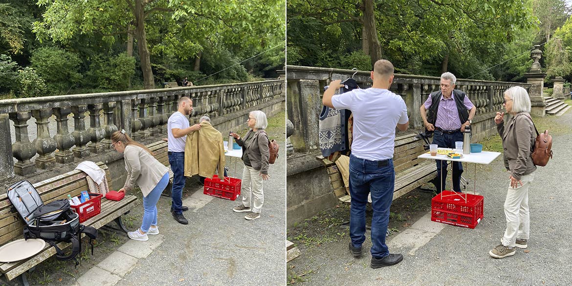 Ein sonniger Septembermorgen im Von-Alten-Park: Für ein ausführliches Fotoshooting in Linden-Mitte treffen sich Daniel und Stefanie mit Grafikdesignerin Brygida Zielke und zwei jungen Leuten, die sich gerade als „TagesGefährten“ mit Hilfsangeboten im Alltag bedürftiger Menschen selbständig machen. Der beste Tagesgefährte war dabei das gute Wetter – schönes und definiertes Licht, sonnig ohne zu gleißend zu sein, kein Regen –, was ein Glücksfall in einer unbeständigen Wetterlage war.