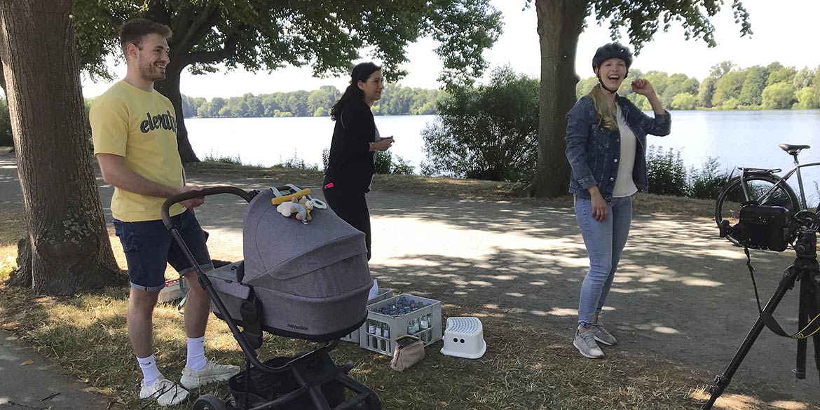 Auch James, der die Betreuung vor Ort für das echt noch kleine Baby organisiert haben wollte, hatte sich mit den Terminen von beiden möglichen Babysittern vertan. Also war das Söhnchen ohne Betreuung mit vor Ort. Aber egal, Daniels Mutter wollte eh mal wieder bei einem Shooting im Hintergrund dabei sein und hat gerne und perfekt den Sitter-Job übernommen. Da war dann auch die Arbeit von Daniel völlig egal und in den Hintergrund gerückt. In kürzester Zeit war sie mit dem Kleinen verschwunden und ist beinahe um den halben Maschsee gelaufen, was die Eltern sehr entspannt zuließen – dabei war dieser bis dahin noch nie so weit von den Eltern entfernt gewesen.