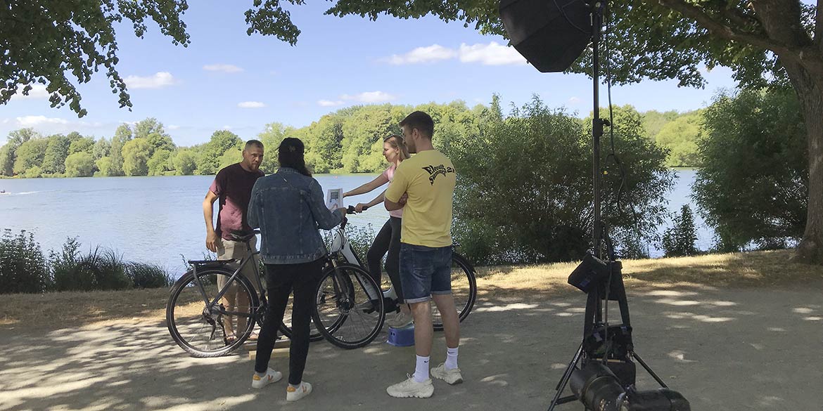 Nicht ganz so perfekt war dann das Timing von Daniel, denn er hatte sich mit Terminen vertan. Azubi Janka war auf Lehrgang in Kiel und Stefanie konnte an dem Donnerstag (angekündigt) nicht, also hatte er eigentlich keine Assistenz. Aber Mandy reiste extra aus Berlin an, um ihn zu unterstützen, pünktlich und negativ getestet (wie alle anderen auch) kam sie an. Auch die Leihräder waren rechtzeitig vor Ort, sodass die beiden das Set mit Licht und allem Pipapo einrichten konnten.