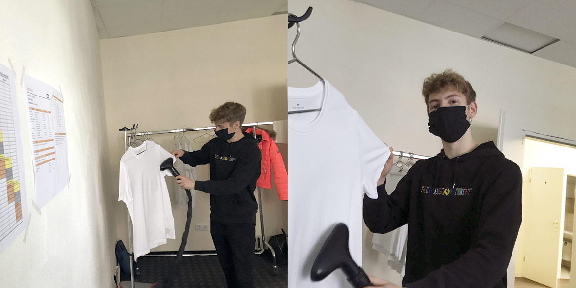Uns erwartete ein längeres und organisatorisch aufwendiges Shooting im Capitol Hochhaus. Beauftragt hatte uns tecis, zehn Modelle – alles individuelle „Typen“ – in weißen T-Shirts zu fotografieren, auf die später „persönliche Statements“ eingearbeitet werden. Wir haben aber nicht wie gewohnt im Studio 7. Stock fotografiert, sondern sind in den 1. Stock ausgewichen, wo gerade Leerstand entstanden war. Da es ein Film- und ein Fototeam gab, mussten und wollten wir uns wegen der Corona-Pandemie entzerren, und das Filmteam sollte sich im 7. Stock einrichten. Großes Dankeschön an unsere Vermieterin, die uns das so unkompliziert möglich gemacht hat.