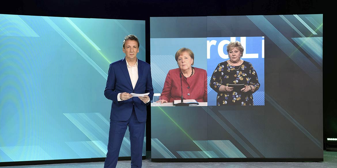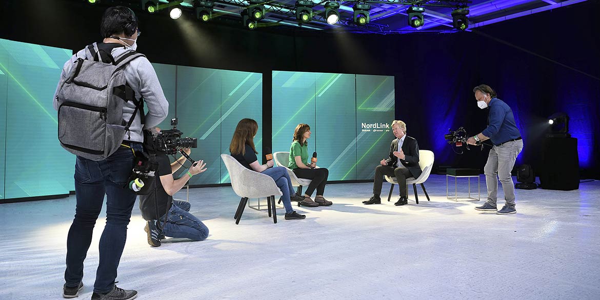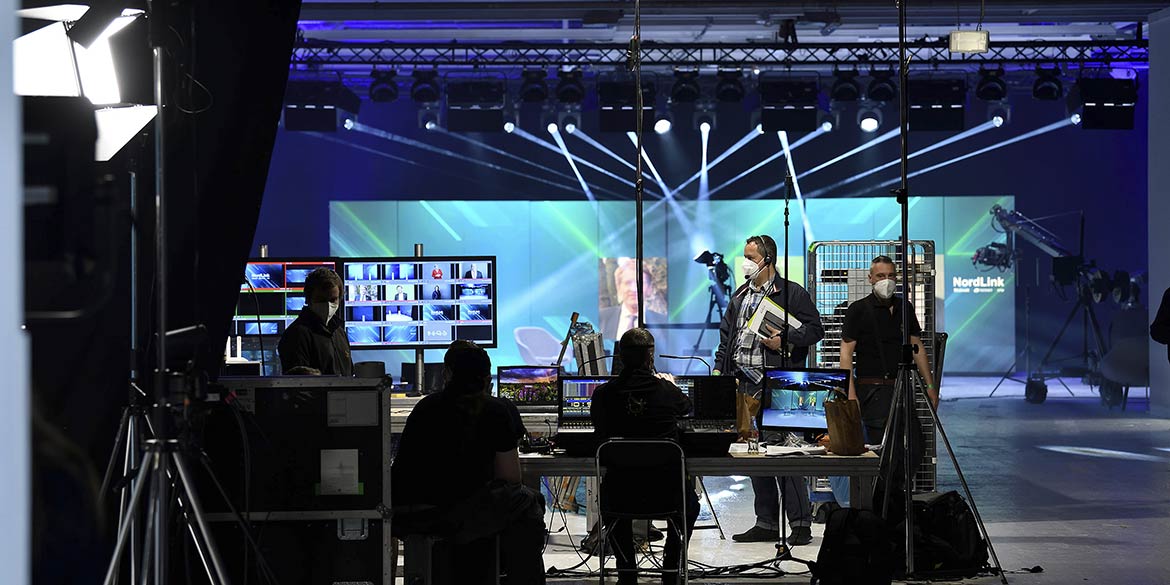 Der nächste Morgen begann (wieder nach Schnelltest) im Studio mit einem großen Schrecken: Über Nacht hatte die Putzkolonne fast alle Markierungen feinsäuberlich entfernt … Argh – Mist! Zum Glück gab es noch Sicherheitsvorlauf und alles konnte schnell nachmarkiert werden. Dann hieß es, konzentriert, professionell und mit großem Engagement im jeweiligen Department zu arbeiten. Dank des perfekten Timings und der sichergestellten Live-Schaltungen war nach kurzen Talks und Statements der Moment der Eröffnung gekommen. Alle wichtigen Personen waren zeitgleich aus den verschiedenen Standorten und Ländern zugeschaltet und die Veranstaltung lief reibungslos. Bundeskanzlerin Angela Merkel sagte unter anderem: „Mit dem heutigen Tage und mit NordLink rücken Deutschland und Norwegen noch enger zusammen. Die erste direkte Strombrücke trägt nicht nur zur Stabilisierung der Energiepreise in beiden Ländern bei. NordLink ist ein Meilenstein für die nachhaltige Energieversorgung und Klimaschutz in Europa. Denn im Mittelpunkt steht der Austausch von erneuerbaren Energien.“ Und dann endlich kam der synchrone Knopfdruck zur Eröffnung.