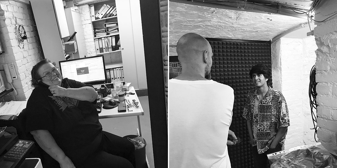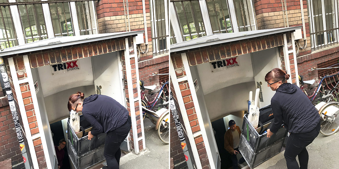 Ende Juni ging es früh morgens nach einer warmen Hotelnacht zum „Jazzanova Recording Studio“, kurz JRS. Das Studio liegt am angenehm unaufgeregt wirkenden Ende des Prenzlauer Bergs – in der sprichwörtlichen zentralen Randlage – und ist in einer ehemaligen Fabriketage beheimatet. Doch leider ist es im 5. Stock und der erhoffte Fahrstuhl fehlt, sodass das gesamte Team bei schon früh am Morgen herrschender Affenhitze das Equipment peu à peu hochtragen musste.