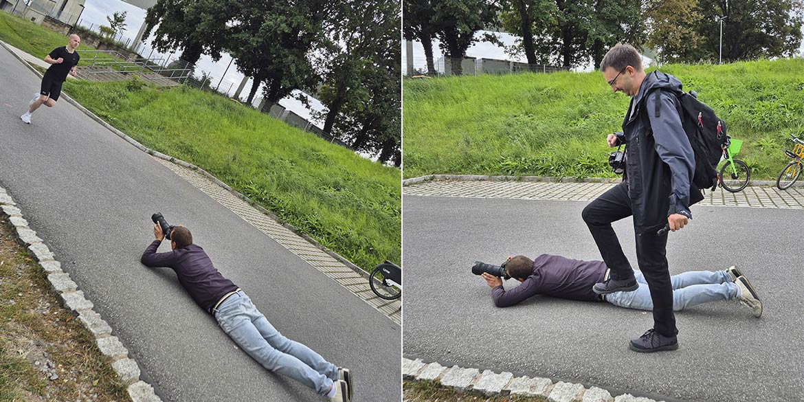 Am kommenden Morgen kamen Sohn und Vater im Ministudio vor die Kamera: die Franzosen Thomas und Bertrand (sowohl Begleiter als auch Trainer). Von beiden entstanden erst Einzelaufnahmen im Set und anschließen draußen noch ein paar Actionaufnahmen beim Tischtennis. Im Anschluss fuhr Daniel erst in eine Schwimmhalle, wo er ein paar Wettbewerbe und Siegerehrungen fotografierte, und danach in den Sportpark Ostra zum Fußball. Dort traf er auf Tom, den er schon einmal für Sanofi portraitiert hatte. Toms Fußballteam kam ins Endspiel und Daniel konnte beim Fotografieren sogar ein Tor von Tom miterleben. Letzte sportliche Station des Tages war die JOYNEXT Arena, wo Daniel ein paar Actionshots beim Badminton machen konnte.