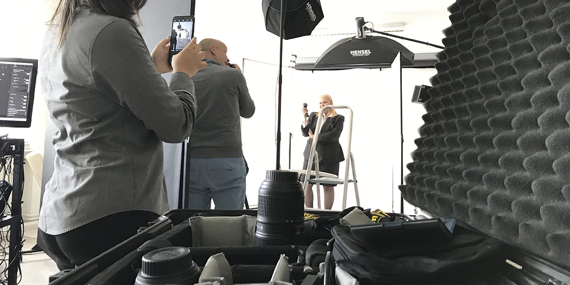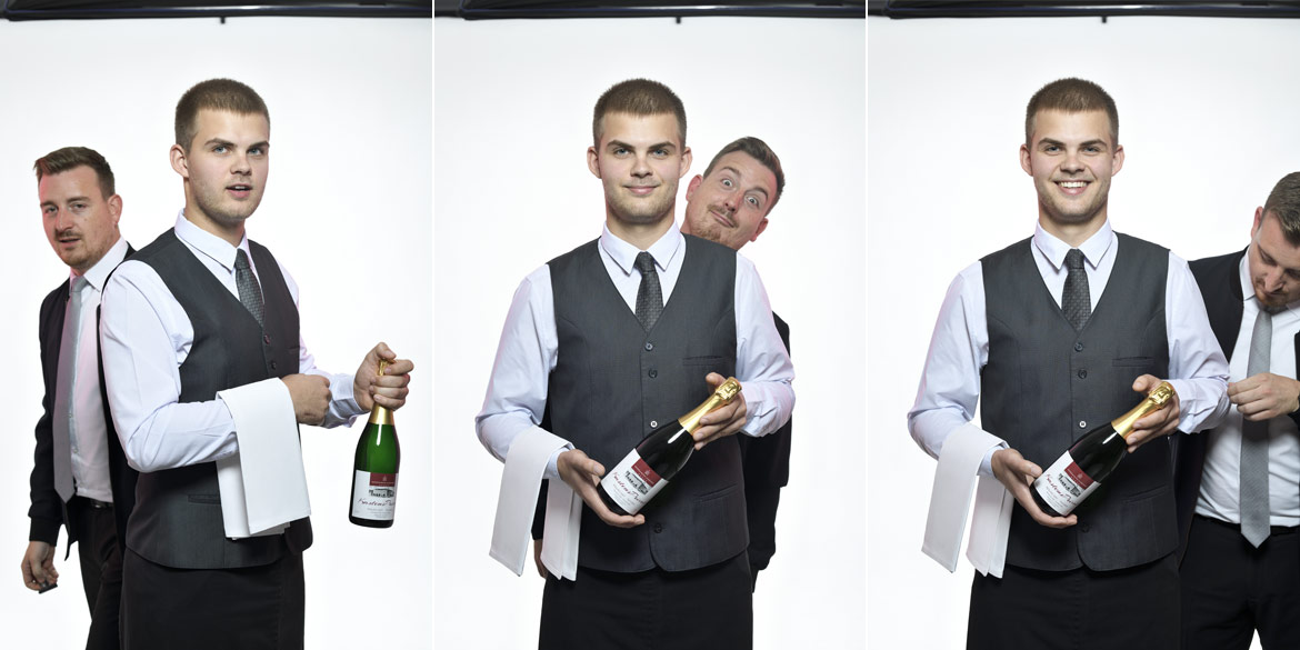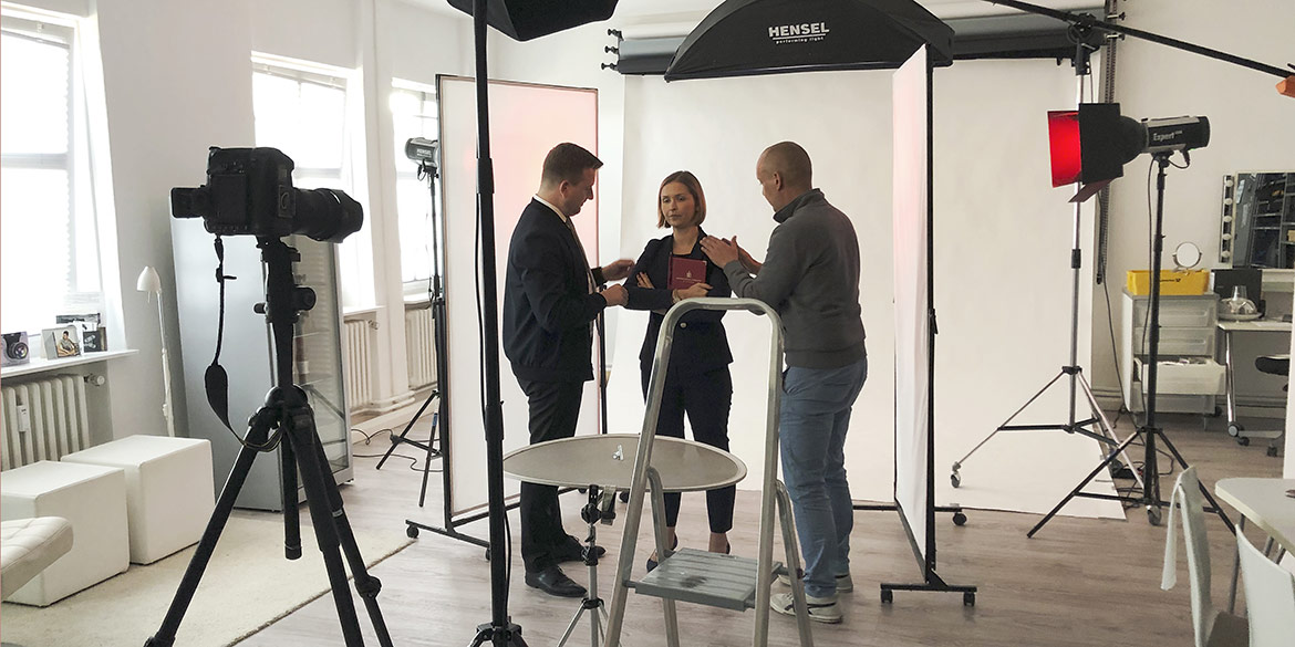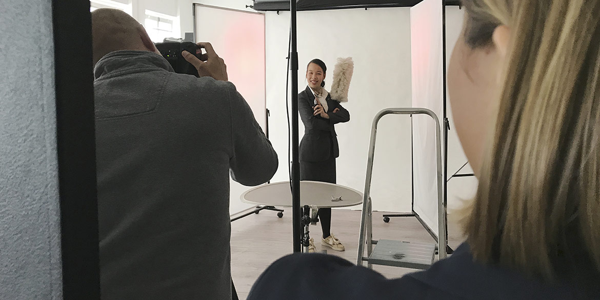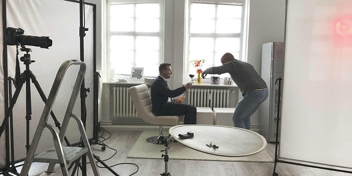 Gut gestärkt konnte nun das Shooting beginnen. Wir starteten mit dem Koch, der zum Glück auch etwas überpünktlich im Studio eintraf (dadurch wurde das zeitlich straffe Programm leicht entzerrt). Weiter ging es mit Doorman, Housekeeping, Service, Rezeption, Ausbildung, Duales Studium und zu guter Letzt kam noch die Verwaltung.