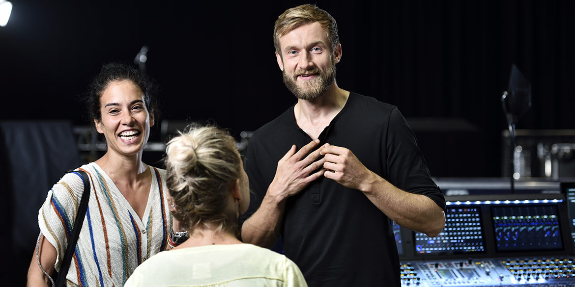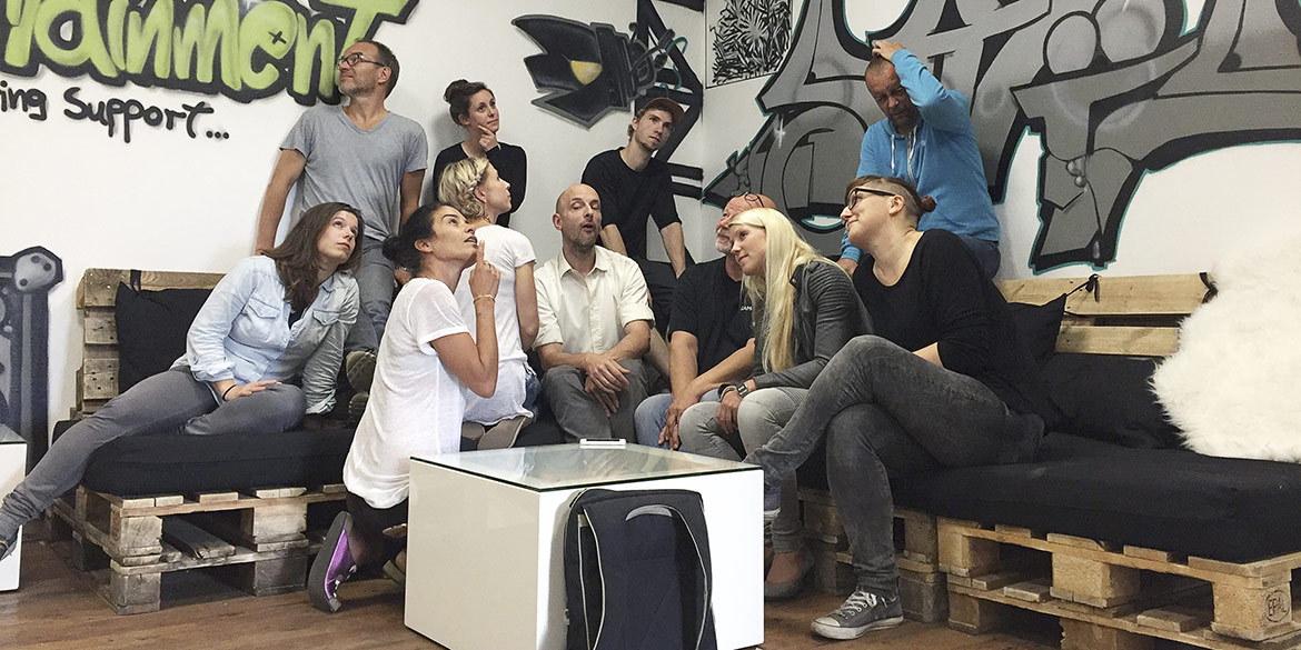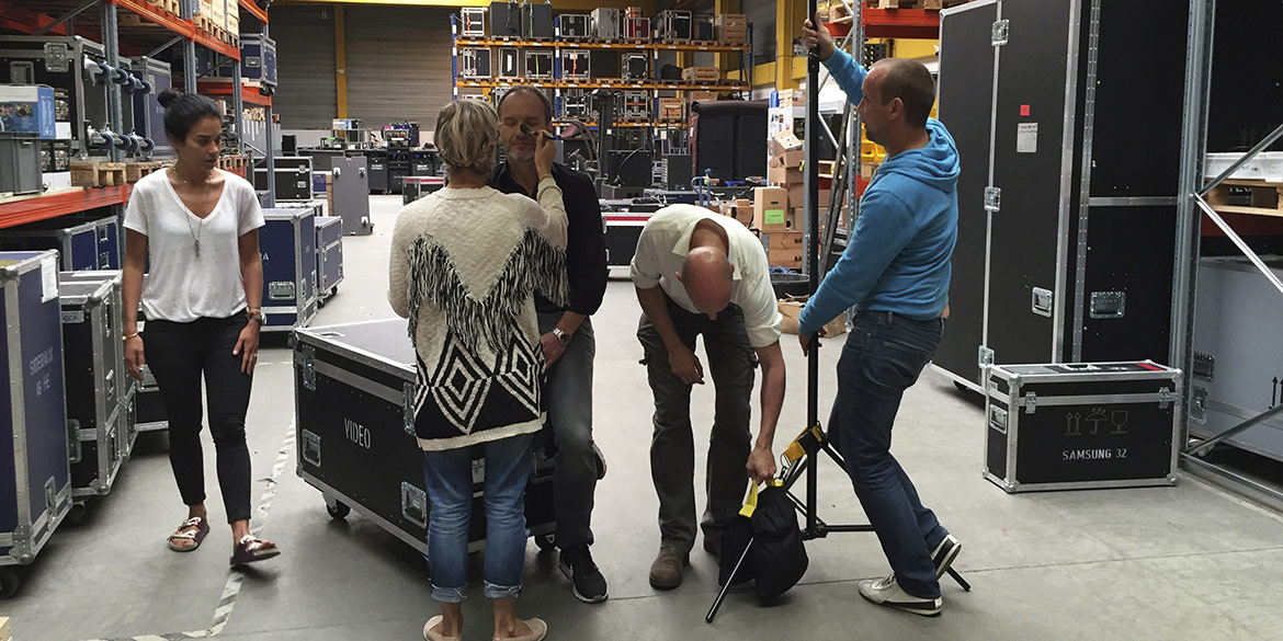 Gleich zwei Tage Shooting waren für die neue 6000er-Serie von Sennheiser geplant, beide in Werne bei der satis&fy AG, die ihre Räume zur Verfügung gestellt hatten. Das Team fuhr von zwei verschiedenen Startpunkten aus los, mit von der Partie in Daniels Auto war unser Ansprechpartner Christian und Assistentin Mandy. Bei einer kurzen Pause fiel Daniels Blick am Pissoir direkt auf ein Plakat mit der passenden Headline „Super Fahrt, Christian“, während selbiger nichtsahnend im Auto wartete. Dies sollte sich über beide Shootingtage auf’s Schönste bestätigen. Zufällig machte auch das andere Auto gerade Pause an der Raststätte, sodass es auch noch zu einem netten Treffen kam.