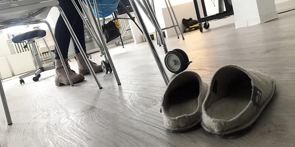 Das geschmeidig funktionierende Dreierteam machte es sich bei der Arbeit so bequem wie möglich – Lisa hatte sogar ihre Puschen dabei – und ließ sich von ABBA antreiben, die in Dauerschleife das Studio beschallten. Derweil bearbeitete Stefanie im Büro schon das am Vortag fotografierte Material.