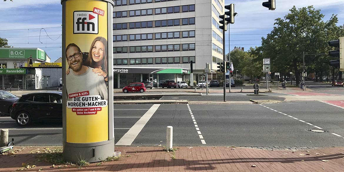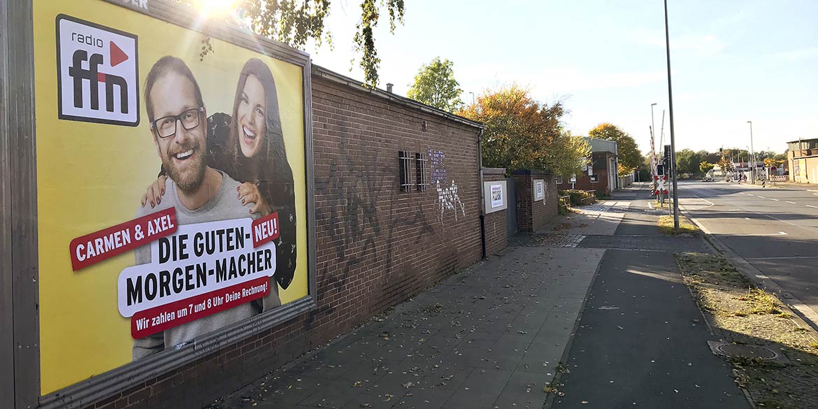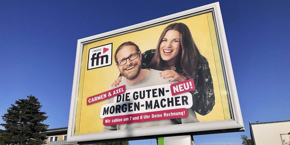 … überall sieht man zurzeit „unsere“ ffn-Motive. Von Litfaßsäulen und verschiedensten Plakatformaten lachen einem die Guten-Morgen-Macher Carmen und Axel entgegen. Und so freuen wir uns auf jeder Radtour und auch jedem anderem Weg durch die Stadt darüber, dass unsere Arbeit so viel gute Laune verbreitet.