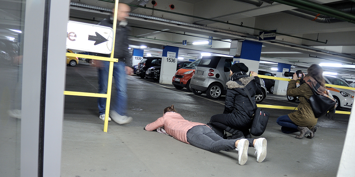 Spannend und lustig wurde es dann noch einmal beim letzten Standort, der Tiefgarage eines Kaufhauses. Hier ging es um den Umgang mit schlechten Lichtverhältnissen und auch wieder darum, Objekte – diesmal ein- und ausparkende Autos – verwischen zu lassen. Als kleinen Spaß übten wir uns auch noch in „Lichtmalerei“ und schrieben mit unseren Handytaschenlampen die Zeichen „I ‚Herz‘ BS“ in die Luft.
