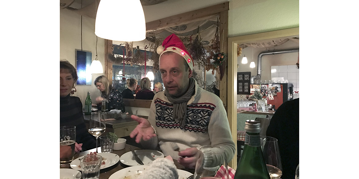 Der ebenfalls traditionelle Jahresrückblick zog sich lange hin, denn besonders Daniel holte weit aus und hatte eine Menge zu sagen. So kamen nicht mehr alle zu Wort und wir zogen zwischendurch zum kleinen Lieblingsitaliener „La Favola“ um, wo dann der Rest der Runde vom Jahr berichtete. Die kleinen Schalen Oliven waren ebenso schnell weggenascht wie die leckeren Antipasti von der Vorspeisenplatte. Nach deftigem Hauptgericht und köstlichem Tiramisu waren wir alle reichlich satt und sehr zufrieden und kugelten uns in die Weihnachtspause.